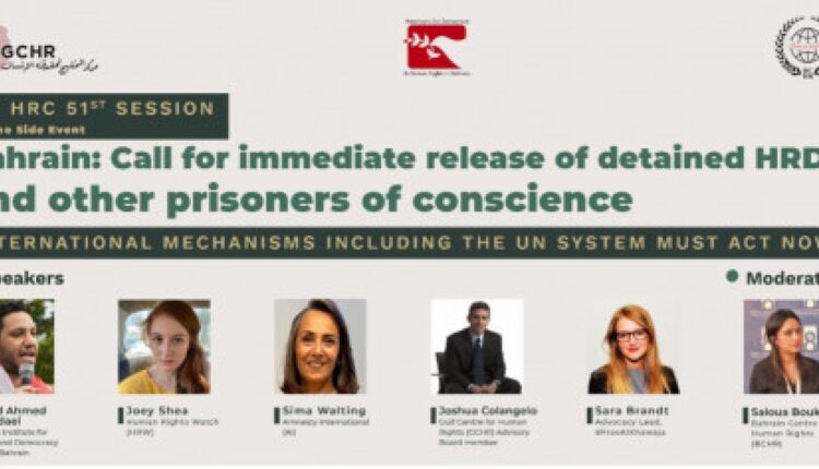 ناشدت منظمات حقوقية غير حكومية الدول الأعضاء في الأمم المتحدة للضغط على البحرين للإفراج الفوري عن مدافعين حقوق الإنسان وسجناء الرأي.